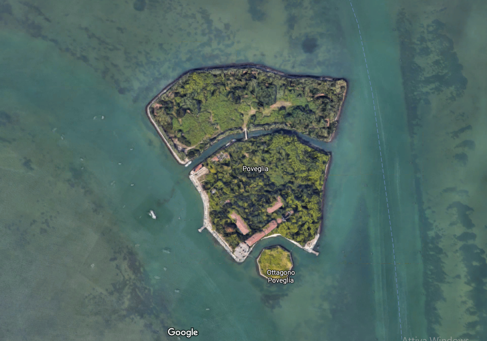 Per capire a fondo la reazione di Andrea, vale la pena esplorare il rapporto viscerale che i veneziani hanno con le loro isole, e con Poveglia in particolare. Poveglia, con i suoi 70mila metri quadrati, è una delle isole più grandi della Laguna. È composta da tre isolotti, distinti ma molto vicini, due dei quali collegati da un ponte: il più meridionale è un ottagono dove un tempo venivano posizionati i cannoni per difendersi dagli attacchi nemici, dato che guarda verso la bocca del porto; il corpo centrale è il più grande, edificato fin da prima dell’anno Mille, dove sorgono undici edifici fra cui la chiesa con il campanile che svetta sulla silhouette dell’isola; infine la parte più settentrionale e verde, chiamata spesso “l’orto” dato che per un periodo i suoi terreni furono assegnati ad un agricoltore.
