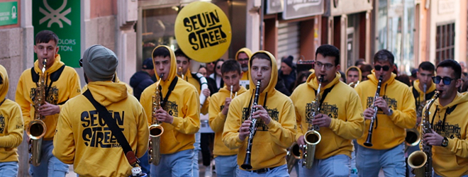 Tradurre in parole la musica, il coinvolgimento e l’adrenalina che caratterizza la Seuin Street Band può non essere semplice. Incrociarli nelle loro esibizioni pubbliche tra le vie di città e paesi è un’emozione unica: un’onda gialla di musicisti che alle melodie proposte abbinano performance in movimento, in una sincronia di note e movenze che trasforma lo spazio pubblico in un palcoscenico unico nel suo genere. In questa intervista è Stefano Gaviano a raccontare la nascita e il ruolo sociale e politico di una banda che sta facendo la storia della musica sarda.