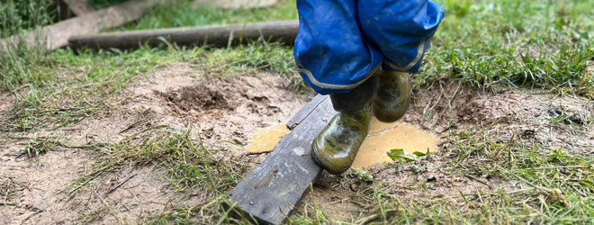 Nella Forest School Pianfei, fra i tronchi e gli arredi prevalentemente in legno collocati per accompagnare le attività nei vari momenti della giornata, la grande area che ospita i bambini è delimitata da corde, in un perimetro e un percorso all’interno del quale i piccoli si muovono a loro agio, consapevoli dei limiti spaziali.