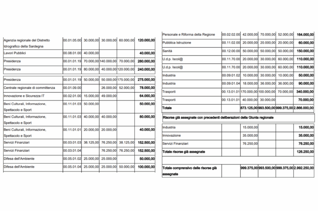 - La giunta regionale guidata da Alessandra Todde ha assegnato ad assessorati e strutture regionali 3 milioni di euro da spendere nel triennio 2025/2027 in studi e consulenze.