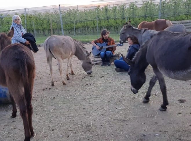Abbiamo cavalli, pony, asini, pecore, capre, conigli, galline, cani e 2 porcellini.