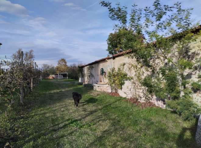 Gli spazi comprendono un giardino con alberi secolari, una piccola vigna con frutteto e anche una ‘discesa’ selvatica, con possibilità di potenziare la coltivazione di ortaggi e frutti e di tenere animali. La proprietà è al centro di un piccolo paese, immersa nel verde ma non isolata.