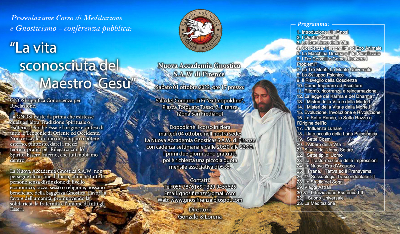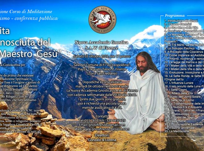 La Nuova Accademia Gnostica di Firenze come Scuola di Meditazione per il Risveglio della Coscienza presenta il Corso Pratico: LA GNOSI UNIVERSALE, con la Conferenza Pubblica dal titolo: