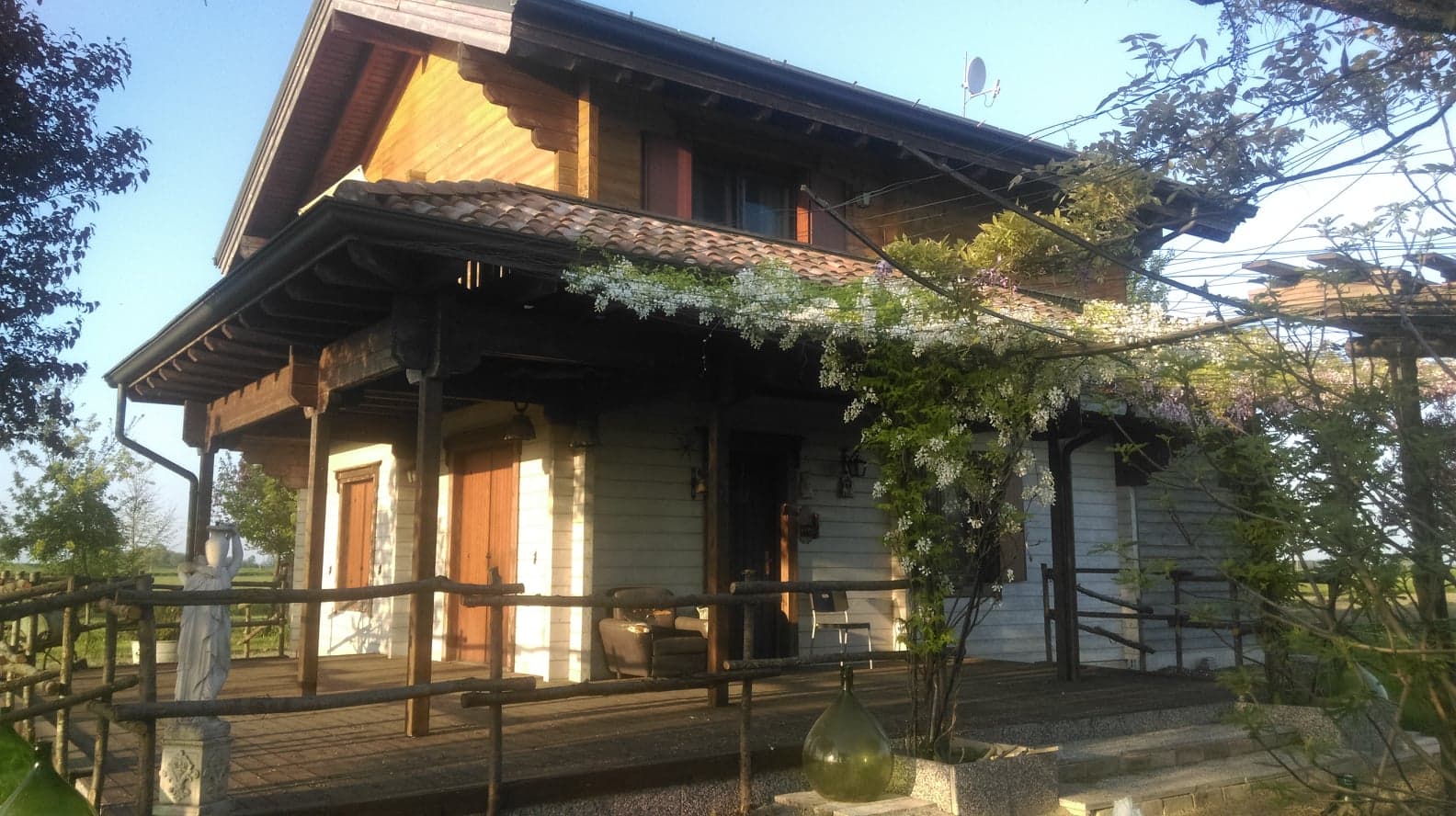Buongiorno, mi chiamo Saverio e abito nella bassa parmense. Ho deciso di mettere in vendita la mia casa, per due motivi: era stata pensata per ospitare anche i miei genitori ma ora non ci sono più ed è diventata troppo grande per me, inoltre è un po’ di tempo che mi frulla in testa l’idea di fare il nomade in giro per il mondo per qualche anno e poi si vedrà… Ma veniamo al sodo. La casa si trova nelle campagne della frazione Carzeto del comune di Soragna in provincia di Parma, in una zona tranquillissima dove non passano auto ma allo stesso tempo vicina a tutti i servizi e alle principali vie di comunicazione (5 km dai paesi di Soragna e San Secondo, 10 km dal casello autostradale di Fidenza, 25 km da Parma). E’ interamente costruita in legno (pino artico, che è di maggiore qualità e resistenza rispetto all’abete rosso comunemente usato), antisismica, classe A1, con impianto fotovoltaico di 6kw e riscaldamento / raffrescamento / acqua calda sanitaria con pompa di calore (sostituita da poco con una nuova di ultima generazione della marca migliore sul mercato), non c’è gas, funziona tutto con l’energia elettrica e i consumi sono bassissimi (400€ all’anno in media, non è un errore di battitura, sono davvero solamente 400€ all’anno). E’ grande 150mq, più 45mq tra balcone e terrazzo, più 50mq di portico coperto. Al piano terra c’è un open space sala+cucina (ma si può ricavare comodamente una stanza in più riducendo la sala), un bagno/lavanderia, e una cantina/stanza tecnica; al primo piano ci sono due camere matrimoniali, un bagno grande, e un soppalco di 20mq (che potrebbe anche essere chiuso per ricavare un’ulteriore stanza). La casa è tutta legno a vista sia dentro sia fuori, ma se non piace si può intonacare senza problemi per ottenere l’aspetto di una casa tradizionale. L’anno di costruzione è il 2010. Il terreno di pertinenza dell’abitazione è di 3500mq circa, tutto piantumato (gli alberi sono già abbastanza grandi, fra 10 anni saranno una meraviglia!!!) e sul lato sud c’è un frutteto con svariate piante di mele, pere, pesche, albicocche, prugne, ciliegie, amarene; c’è inoltre sufficiente spazio per fare un grande orto e anche per allevare animali di piccola/media taglia. Davanti alla casa c’è un grande pergolato ricoperto da glicini (la foto è di qualche anno fa, ora è fittissimo e profumatissimo in periodo di fioritura), insieme a un gazebo di 16mq con illuminazione. Sul retro e distaccata dalla casa è anche presente una costruzione accessoria “alla buona” di circa 60mq, attualmente usato come ricovero attrezzi ma sarebbe perfetto anche per gli animali, e se si vuole è anche possibile costruire un garage di 27mq massimo. L’acqua corrente proviene dal pozzo che è privato (acqua limpida e potabile), quindi non ci sono costi e si possono tranquillamente innaffiare grandi superfici. Il posto è sempre leggermente ventilato, il che lo rende piacevole anche in piena estate quando c’è molto caldo. La richiesta è di 420.000€. Lo so, è un prezzo impegnativo, ma la casa è praticamente nuova e c’è da considerare che per fare una casa con le stesse caratteristiche oggi si spenderebbero minimo 100.000€ in più; inoltre l’impianto fotovoltaico beneficia di incentivi pari a circa 3.000€ all’anno fino al 2029, incentivi che verranno incassati dall’acquirente dopo il passaggio di proprietà dell’immobile. A parte si può trattare anche la vendita dell’arredamento, che è molto particolare e unico nel suo genere. Per richiedere altre foto o per vedere la proprietà chiamatemi al 340-3941793 e si organizza.