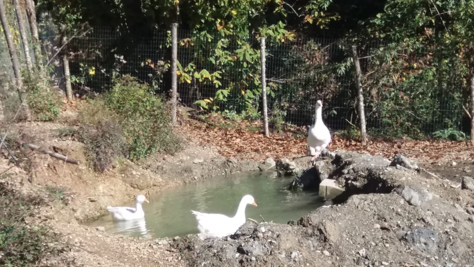 Il casolare è circondato da undici ettari di terreno: nell’orto e nel frutteto si trovano le primizie di stagione e nella fattoria si possono coccolare asini, pecore, galline e gli otto cani.