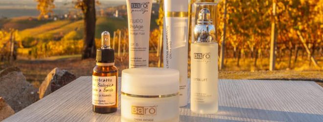 Barò Cosmetics nasce da principi ispiratori legati all’economia circolare: ogni anno recupera 1000 kg di vinacce destinate allo smaltimento e le reimmette nel ciclo produttivo. I semi e le bucce dell’uva biologica coltivata a Barolo, dopo il processo di pigiatura e torchiatura, conservano l’80% dei polifenoli dell’acino, mantenendo un’alta concentrazione di sostanze antiossidanti presenti in questa materia. Sull’estratto-madre vengono poi formulate creme, sieri e oli di bellezza adatti a esigenze diverse.