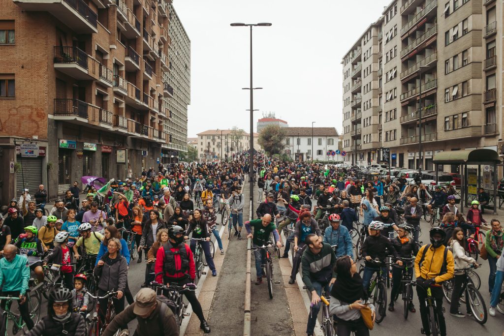 Bike Pride è anche la parata festosa di biciclette, che negli ultimi anni ha portato più di 50 mila persone a pedalare per le vie di Torino, per chiedere una città a misura di persona, più sostenibile e vivibile.