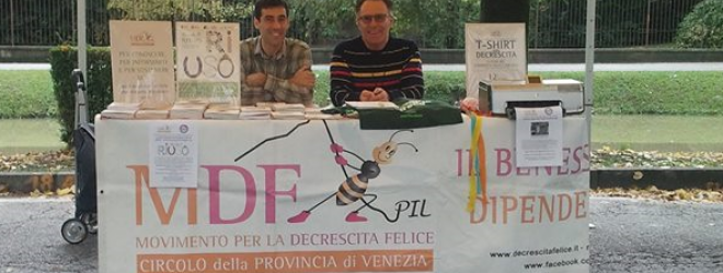 Il Circolo di Venezia esiste da gennaio 2012 ed ha svolto numerose attività di presentazione della decrescita, di promozione di imprese che producono beni in maniera responsabile con attenzione alla compatibilità ecologica, di sensibilizzazione sugli stili di vita, sull’energia, sui rifiuti ecc.