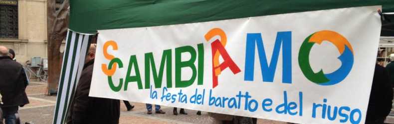 La rete di associazioni che aderisce a sCambiamo organizza regolarmente una festa di scambio oggetti da riusare: ogni partecipante può portare i propri oggetti e ricevere in cambio delle monete di legno da utilizzare per “acquistare” i beni esposti.