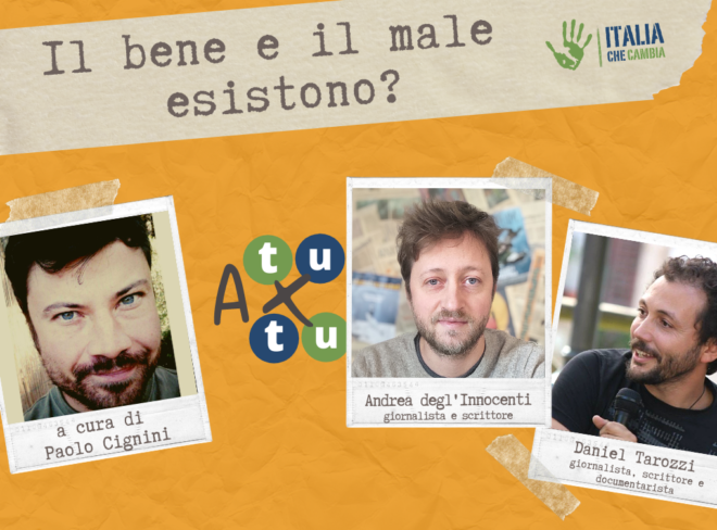 Nel dodicesimo appuntamento di “A tu per tu” giochiamo “in casa”, partendo dalla domanda delle domande: il bene e il male esistono davvero? Se lo sono chiesto Andrea degl’Innocenti e Daniel Tarozzi, due spine dorsali di Italia che Cambia, che ad un certo punto hanno scoperto di avere opinioni molto diverse sul tema dei valori.