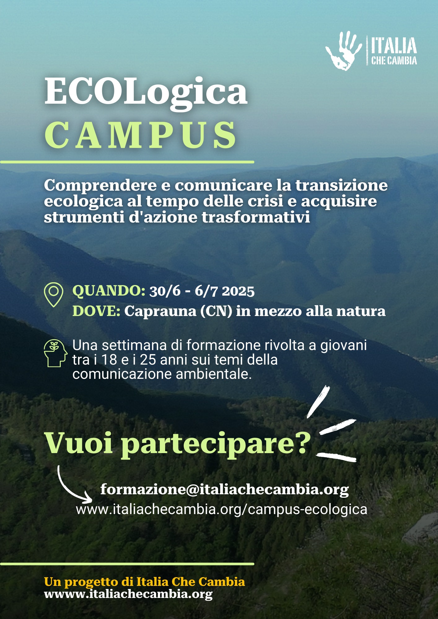 Data: 30 giugno – 6 luglio 2025Dove: Caprauna (CN) Descrizione: L’obiettivo di ECOlogica CAMPUS:contribuire, attraverso un’azione educativa intensiva e partecipata, […]