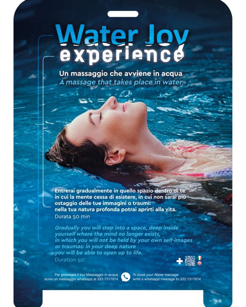 Water Joy Experience: è un massaggio che avviene in acqua. Attraverso una serie di manovre in acqua, mentre il tuo corpo potrà incondizionatamente abbandonarsi tra le braccia dell’operatore, avrai la possibilità di raggiungere in poco tempo uno stato di rilassamento profondo, scioglimento delle tensioni muscolari, rapido recupero delle tue energie.